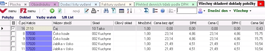 - Přehled denních tržeb dle DPH, plateb a pokladny